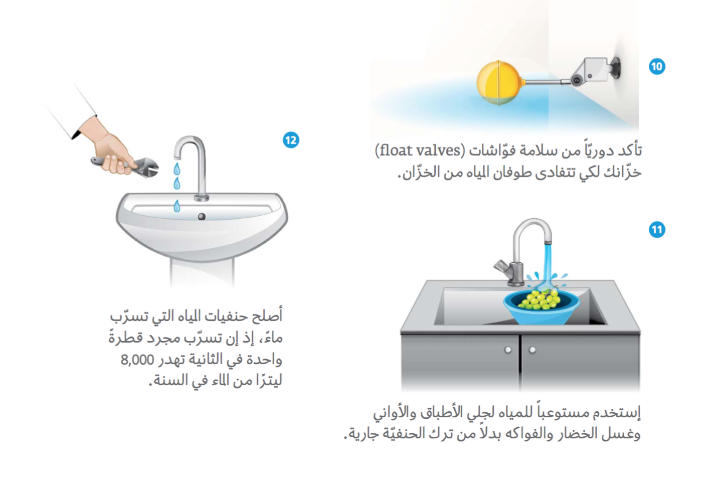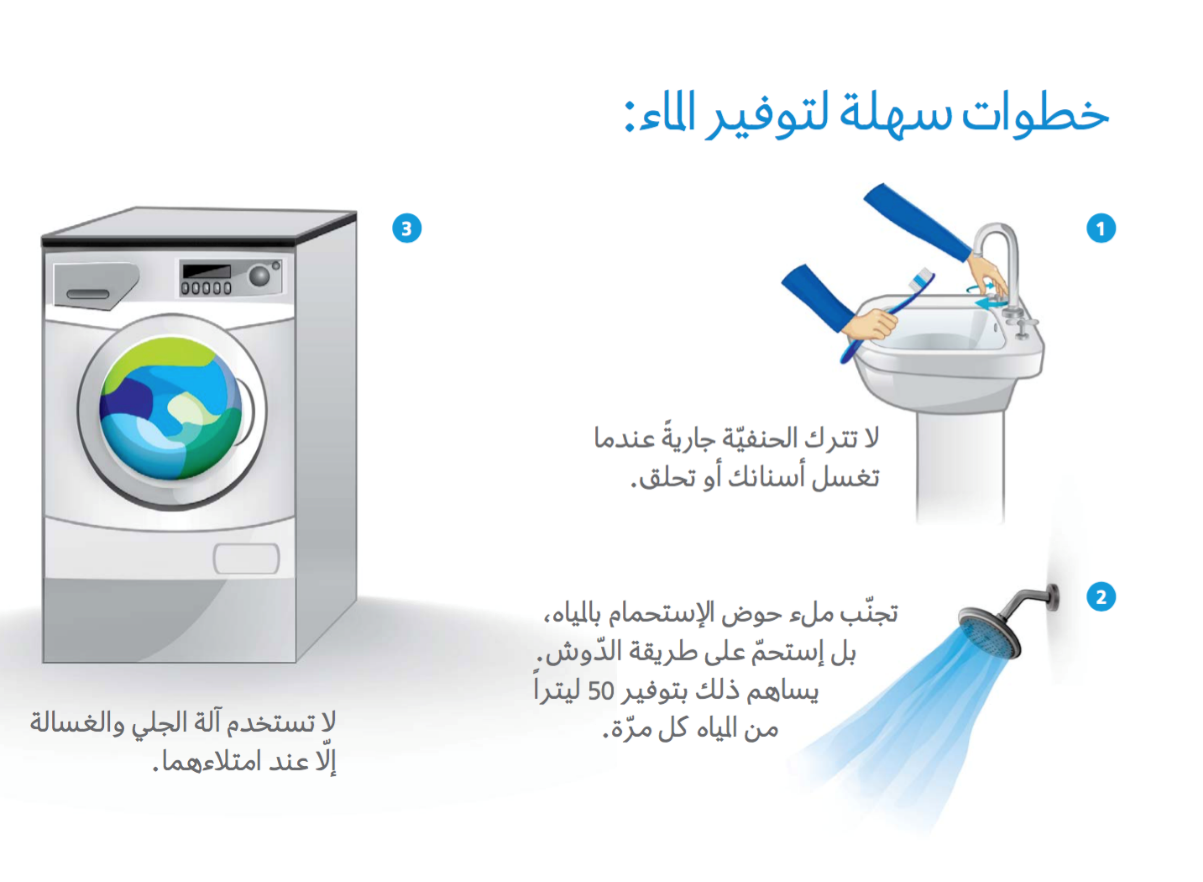 - يجب إحكام اغلاق صنبور المياه بعد الانتهاء من الغسيل وطيلة فترة تنظيفك لأسنانك منعاَ للهدر.