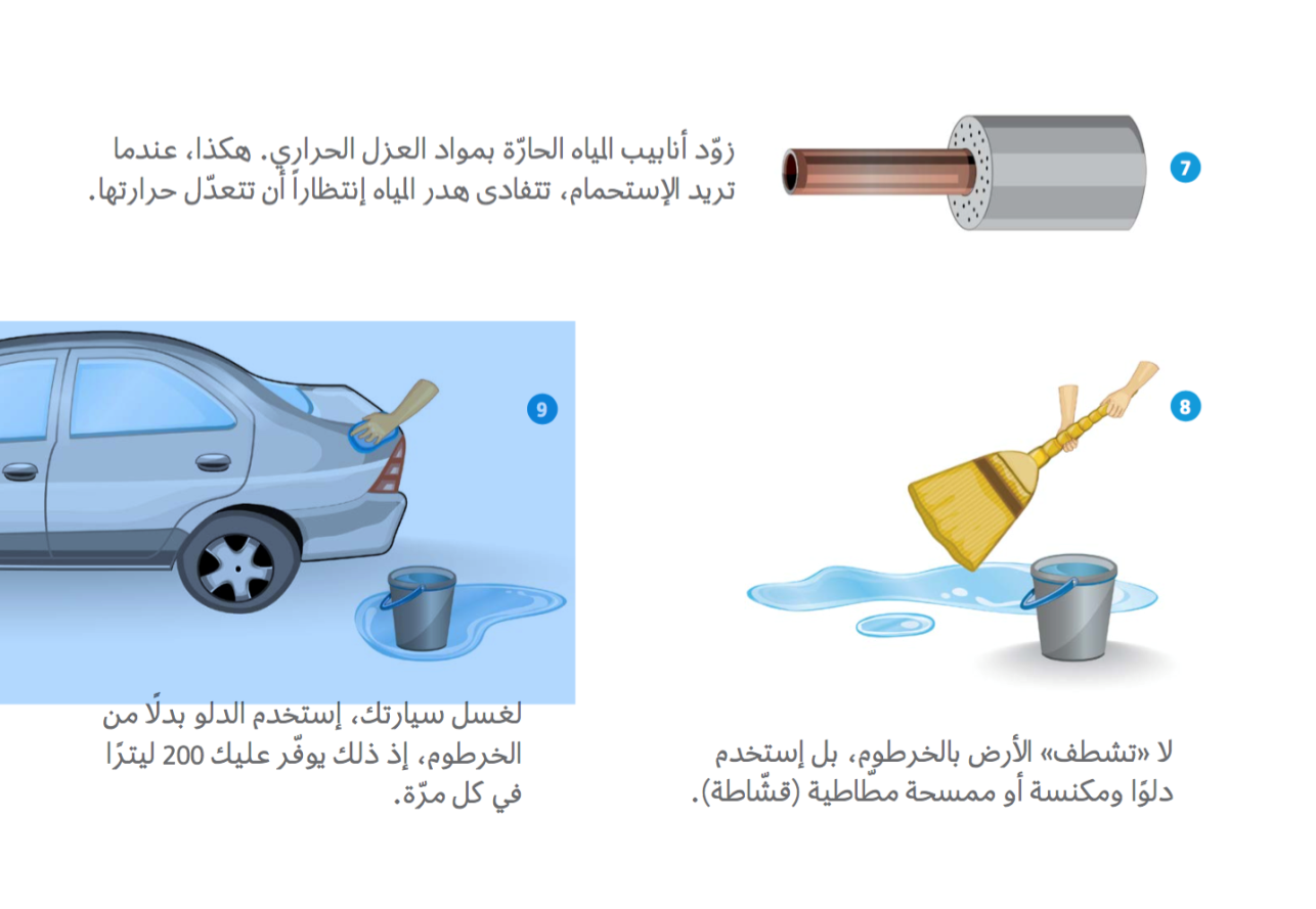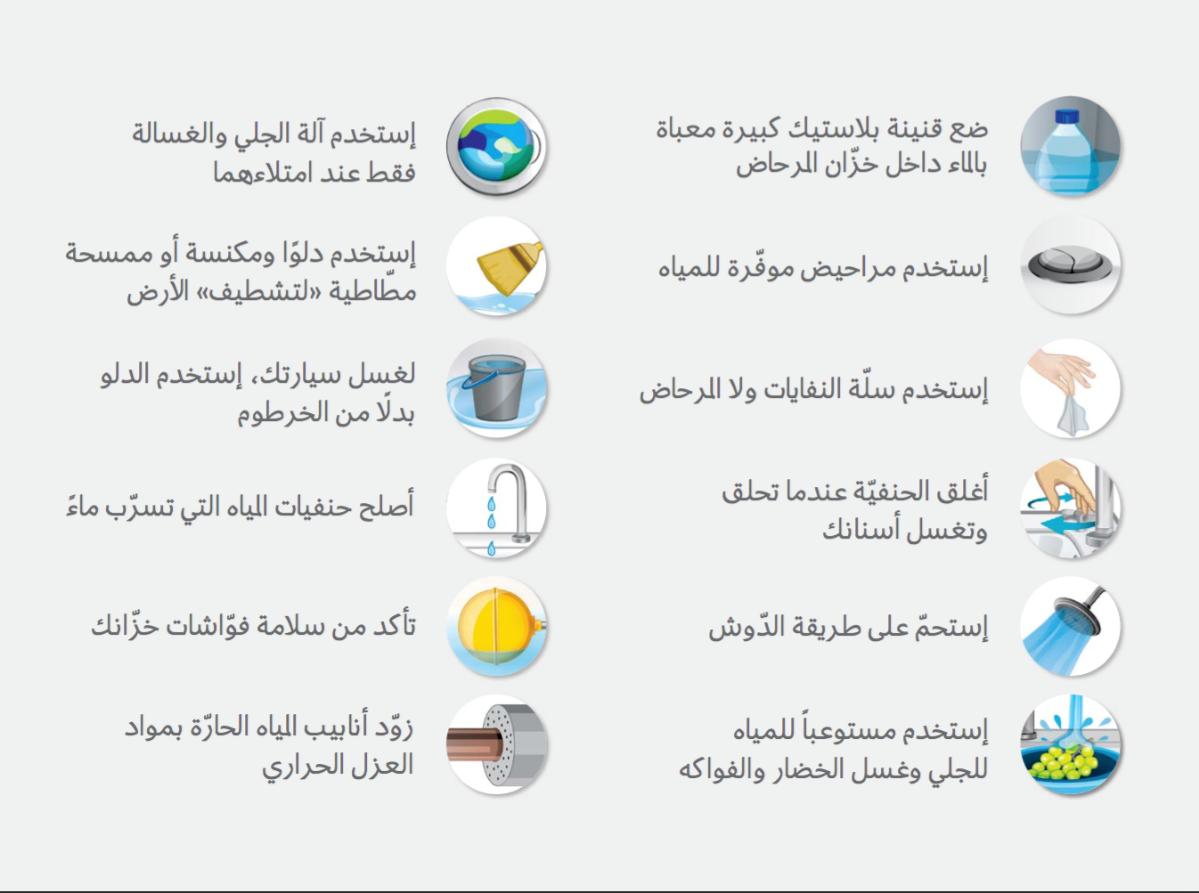 الماء ثروة عظيمة ونعمة كبيرة أنعم الله بها على كل البشر، فلا حياة بدونه. وانطلاقاَ من هنا يسرّنا أن نضع بين أيديكم مجموعة من الإرشادات للمحافظة على المياه تجنباً للهدر.